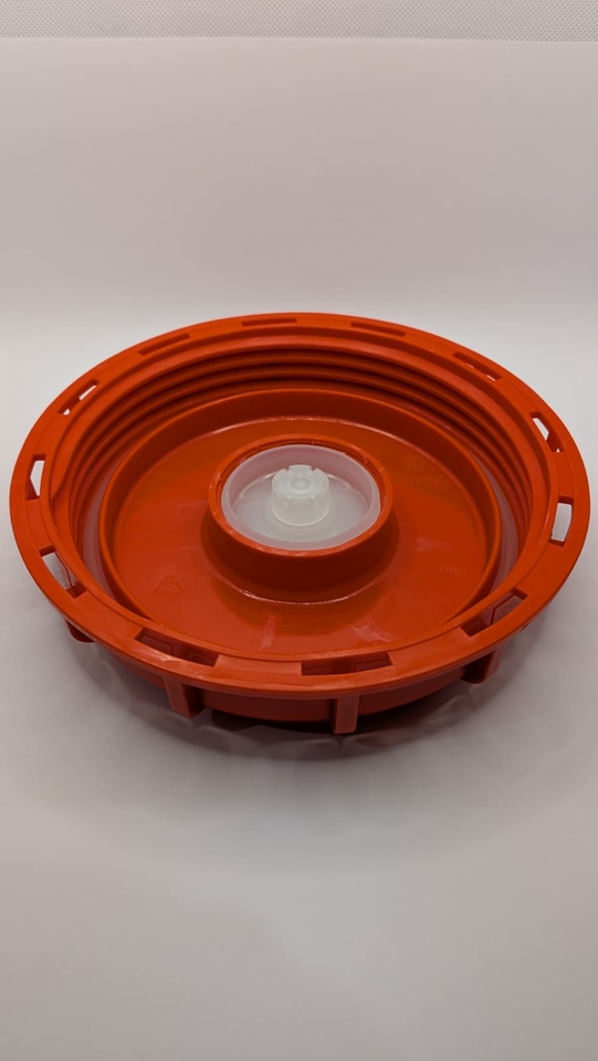 150mm IBC combination cap with 2-inch vented plug, tamper-evident red cap assembled