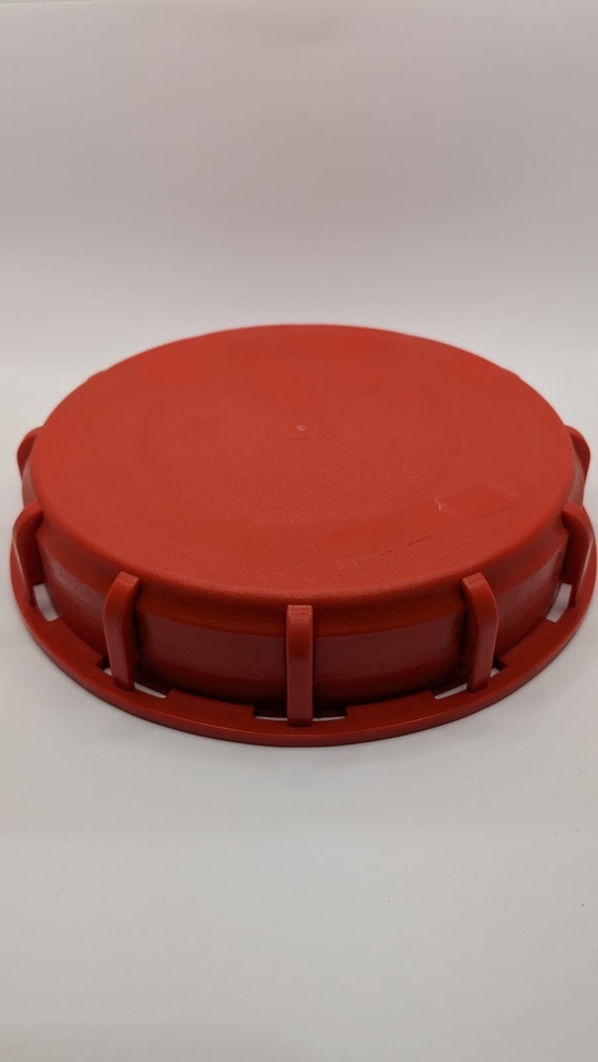 150mm non-vented IBC lid, red, designed for secure sealing applications.