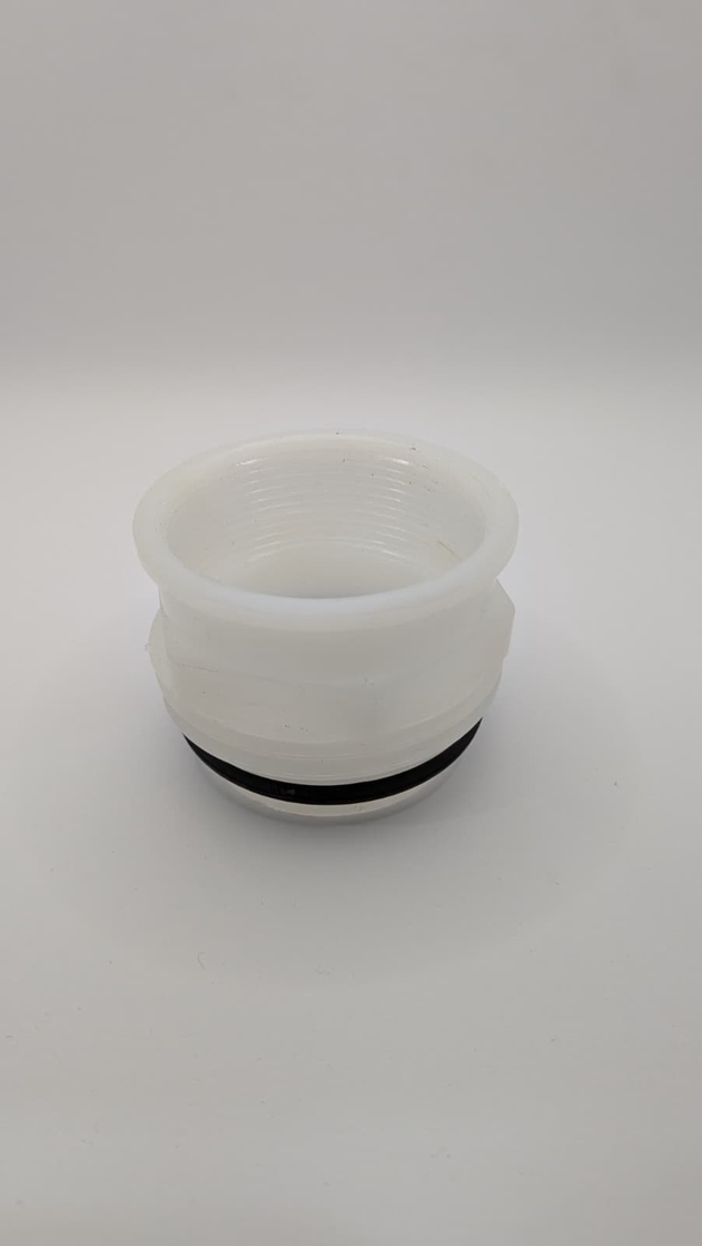 Adaptor for Mauser drum threads, 70×6 (S70) buttress thread male x 2″ BSP thread female. Enables the thread on a plastic drum to be adapted to common dispensing pumps that have a 2”
